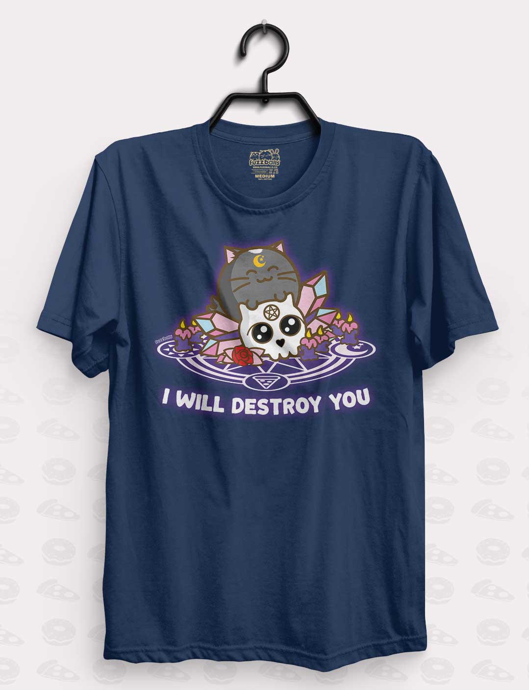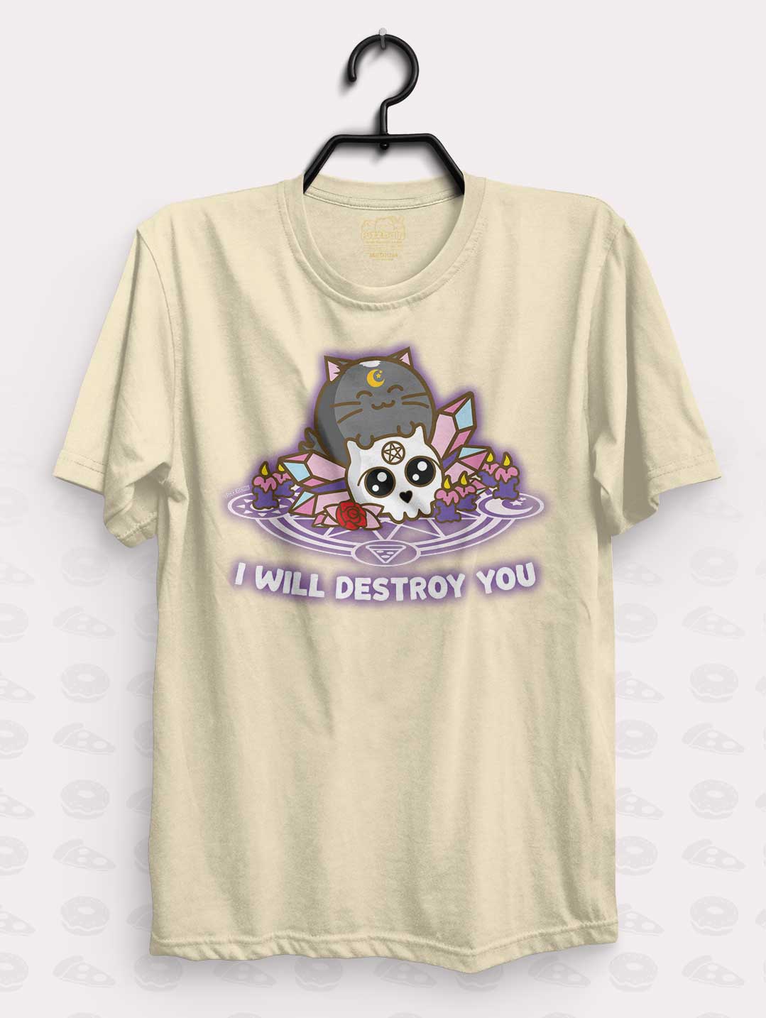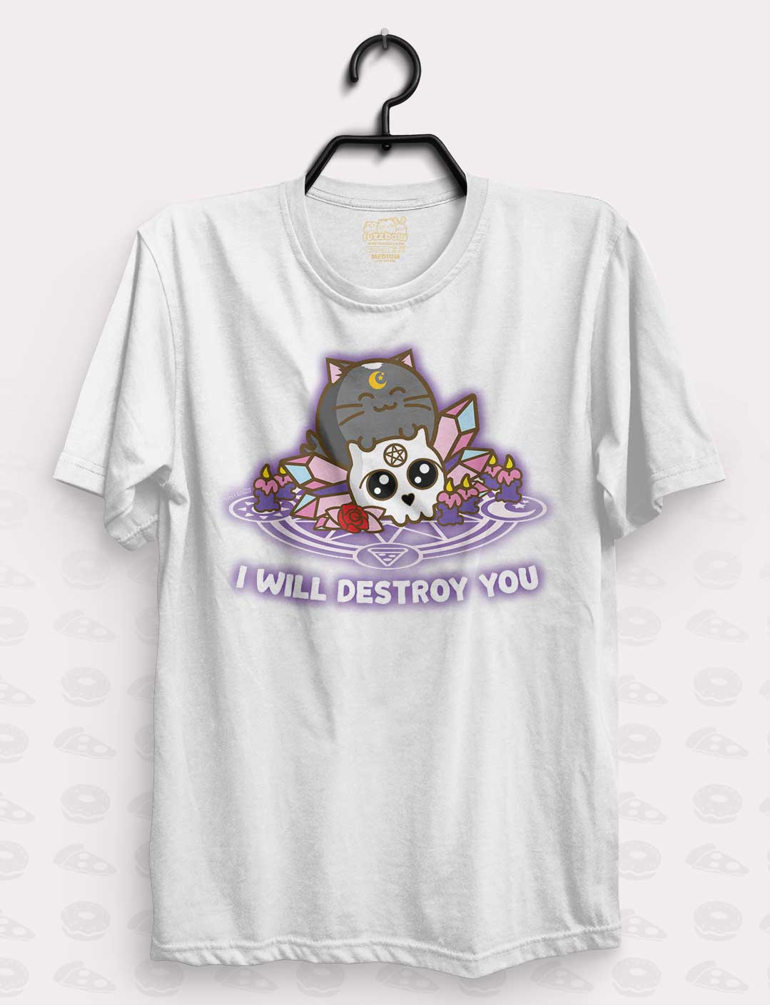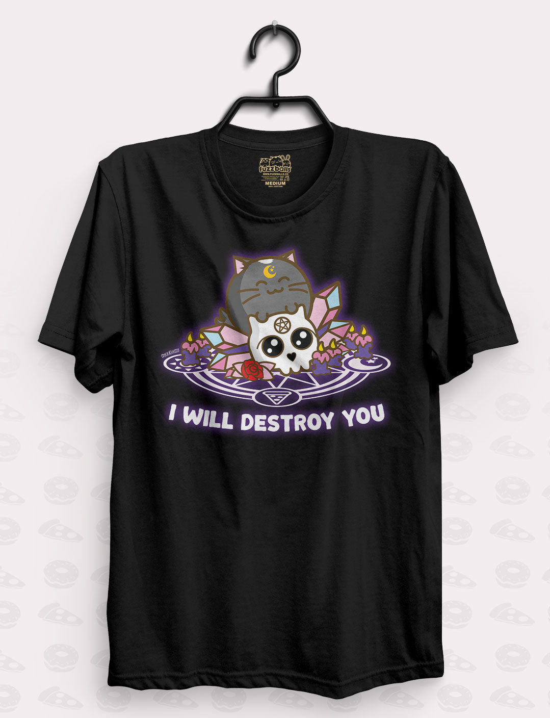 Pixel cats first shirt design! He is all ready for Halloween, to summon candy and pizza. But be warned, he will destroy you!