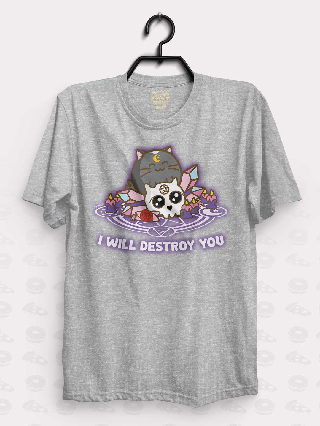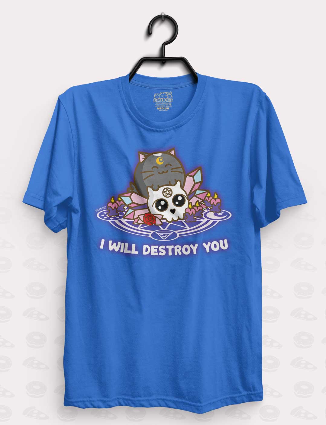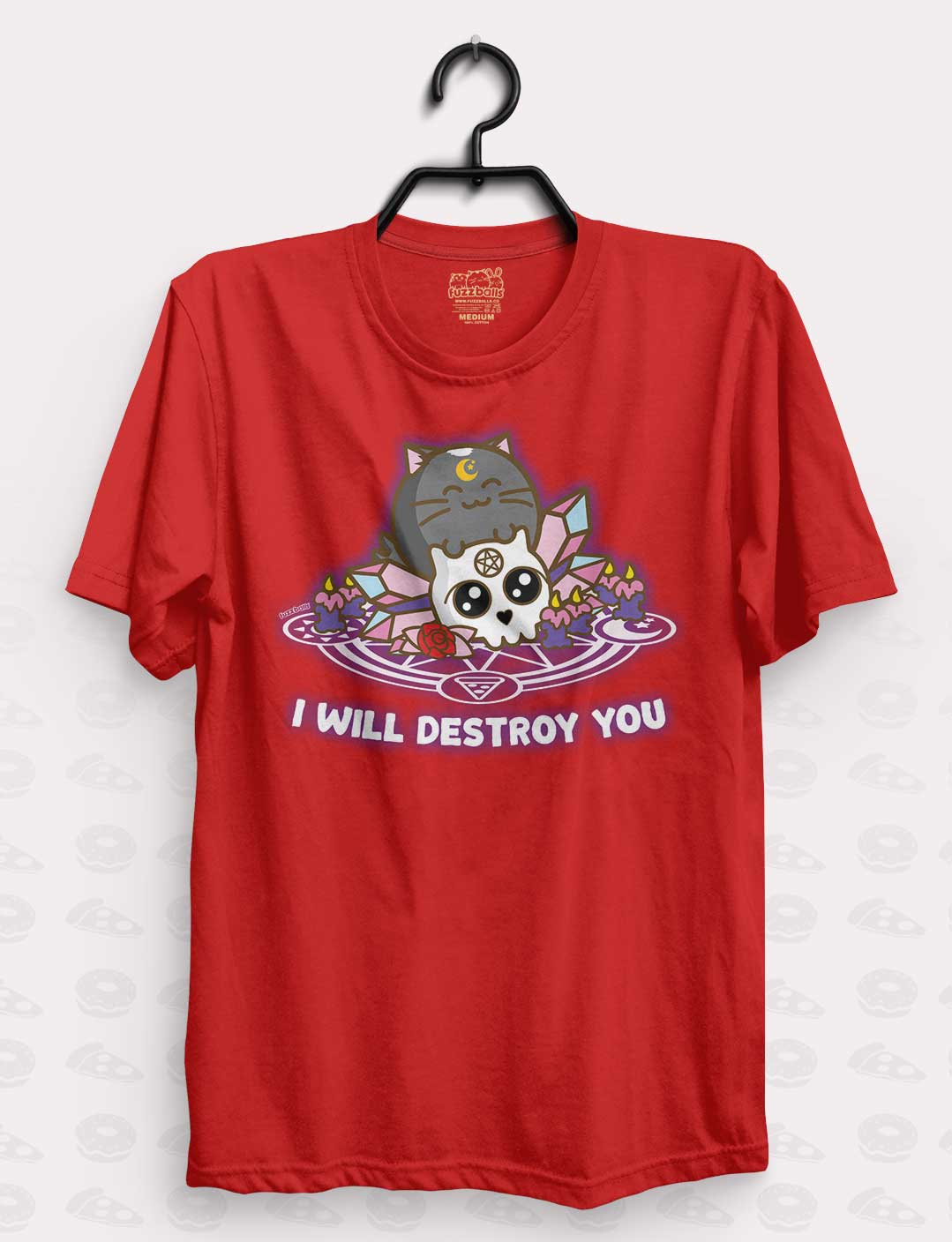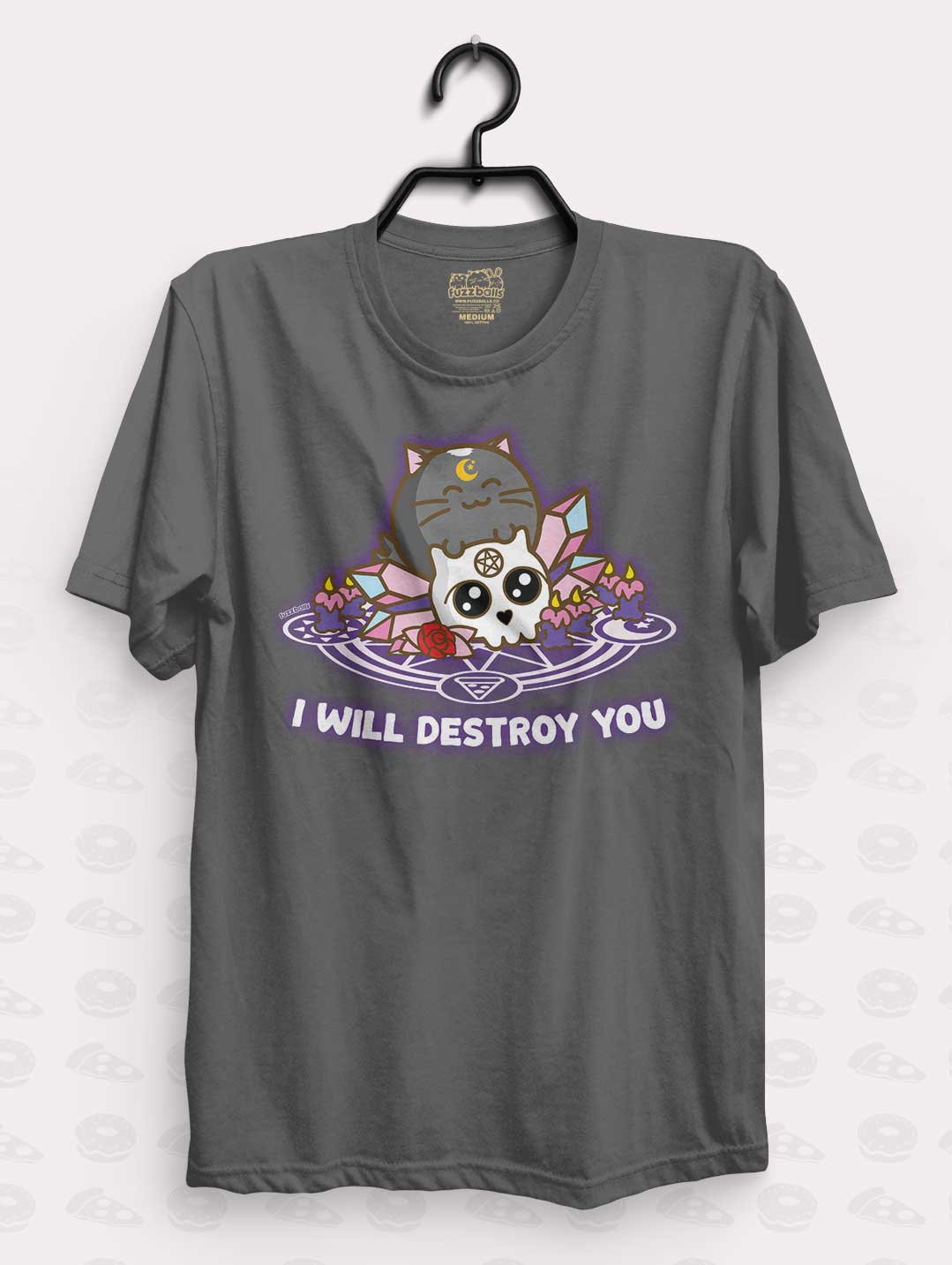 Pixel cats first shirt design! He is all ready for Halloween, to summon candy and pizza. But be warned, he will destroy you!