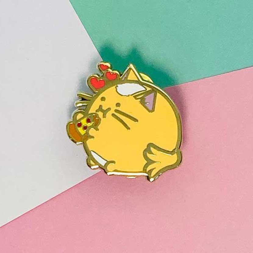 Whisky the cat loves eating pizza. Spread love for pizza and cats with this cute enamel pin.